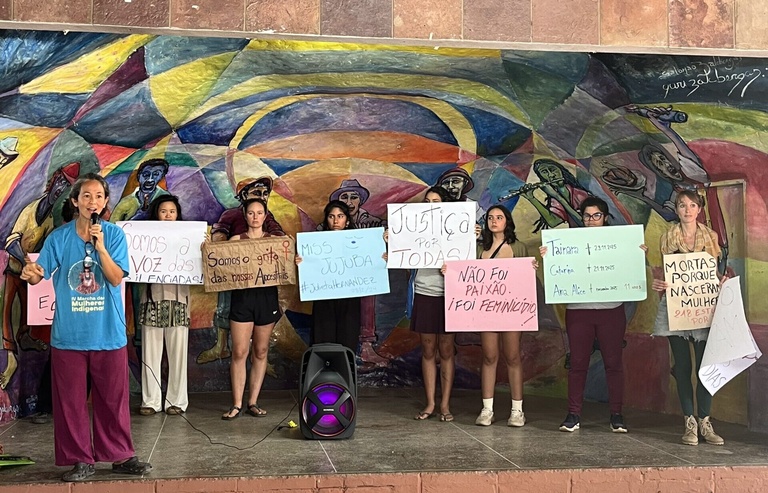 Durante manifestação de mulheres, uma das presentes sofreu agressões verbais e ameaças, evidenciando as situações de violência a que estão expostas diariamente.