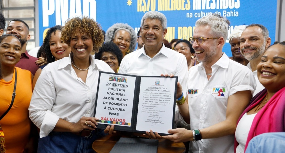 Como parte da agenda do Novembro Negro, o governo anunciou, nesta quarta-feira (19), o lançamento do Ciclo 2 da Política Nacional Aldir Blanc de Fomento à Cultura (PNAB). A iniciativa, conduzida pela Secretaria de Cultura do Estado (Secult-BA), autoriza a abertura de 27 editais e prevê um investimento total de R$ 70,4 milhões para ações de premiação cultural, apoio a projetos e iniciativas da Cultura Viva. O anúncio ocorreu no bairro da Liberdade, em Salvador, com a presença do governador Jerônimo Rodrigues, do secretário de Cultura, Bruno Monteiro, além de autoridades e representantes da sociedade civil.