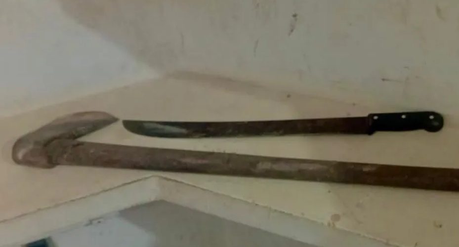 De acordo com a PM, a equipe foi acionada pelo CICOM após relatos de que um homem estaria ameaçando sua companheira e filhos, supostamente armado com um facão e um machado.