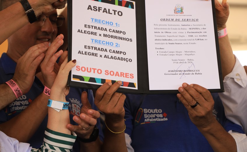 Em Souto Soares, a população, em festa, recebeu investimentos que somaram R$ 23 milhões em mobilidade, com a assinatura das ordens de serviço para pavimentação de 5,4 km (BR-122 entre Campo Alegre e Morrinho de Baixo e entre Campo Alegre e Alagadiço) e autorização para confecção de licitação para o asfaltamento do trecho entre Gameleira de Barro Alto e Cisterna, obra que foi a mais comemorada entre os presentes e que tem estimativa de custo de R$16 milhões.